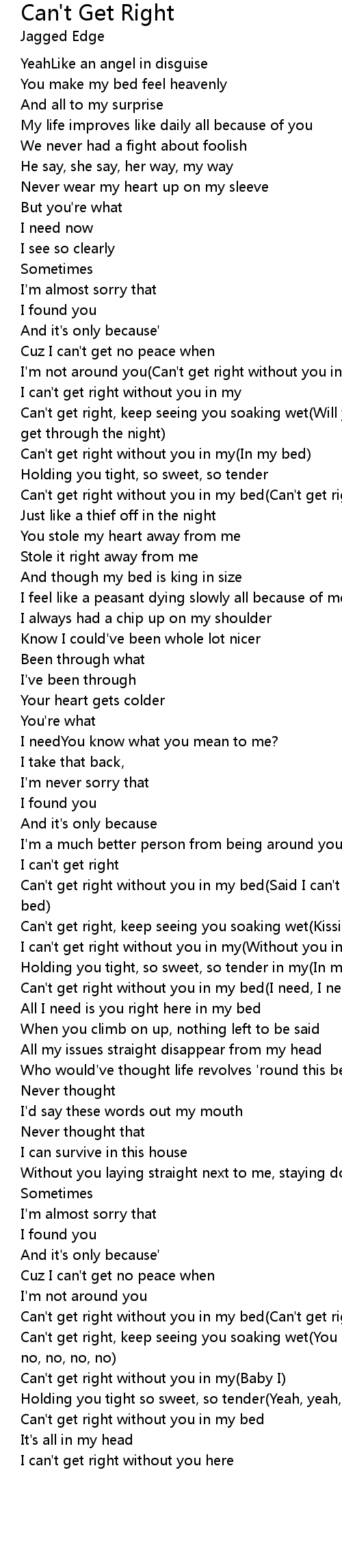 Can't get right without you in my bed(Can't get right without you in my bed) |