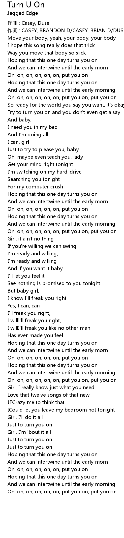 | Song | Turn U On |