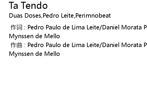 | [00:00.000] | 作词 : Pedro Paulo de Lima Leite/Daniel Morata Perim/Felipe Mynssen de Mello |