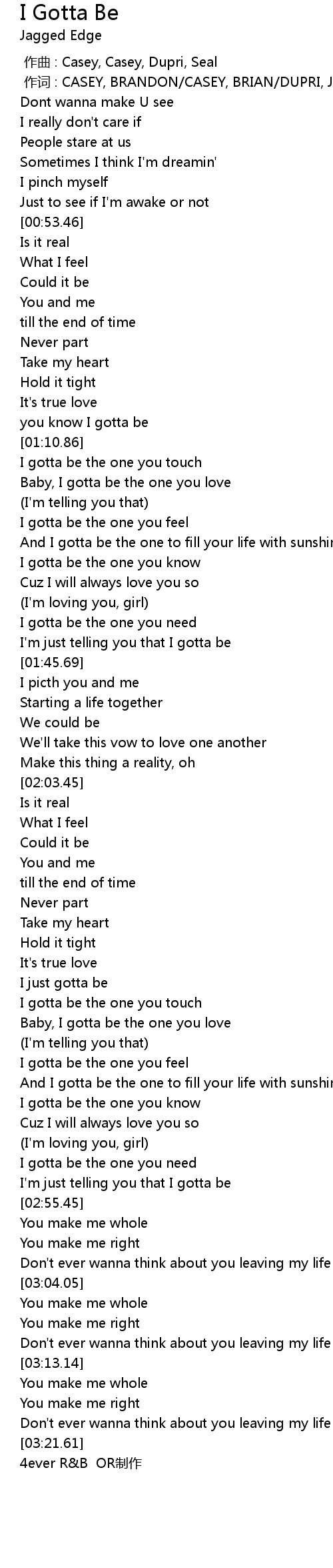 | [01:37.13] | I gotta be the one you need |