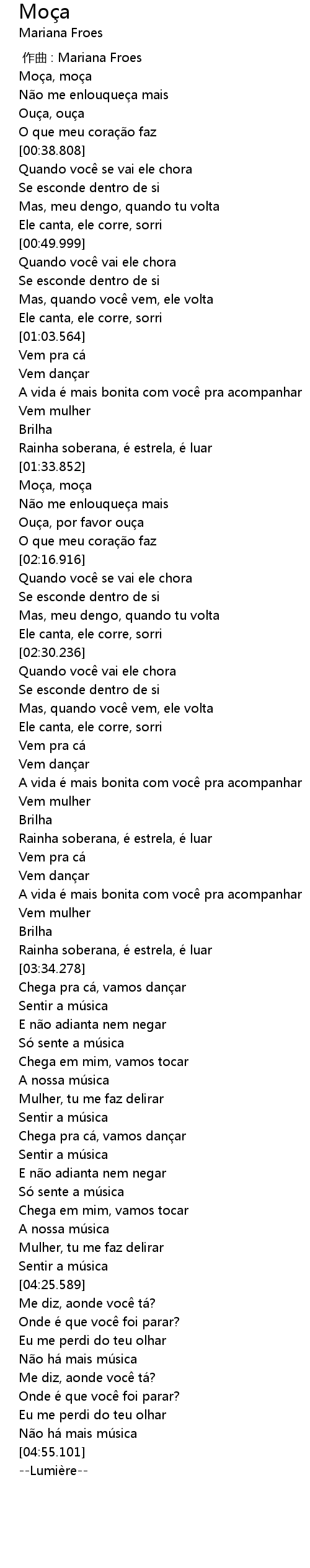 | [00:14.560] | Moça, moça |