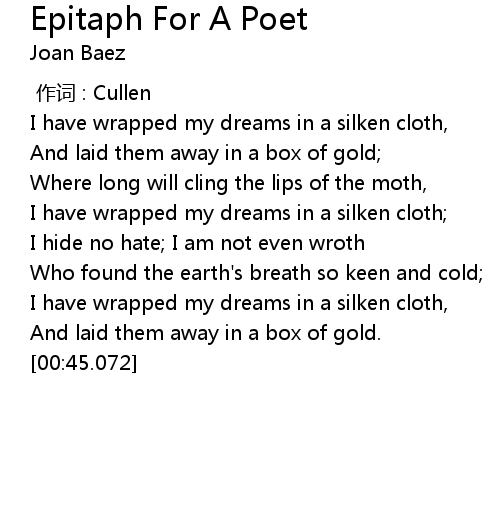 | [00:35.645] | I have wrapped my dreams in a silken cloth, |