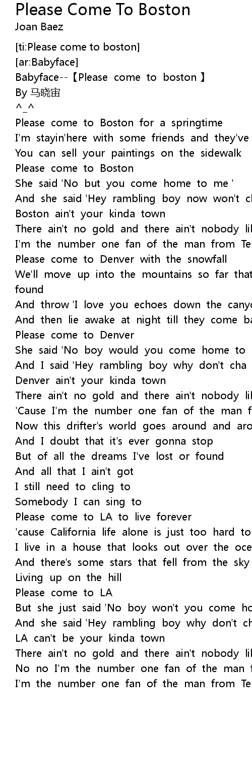 | [00:00.501] | Babyface--【Please come to boston 】 |