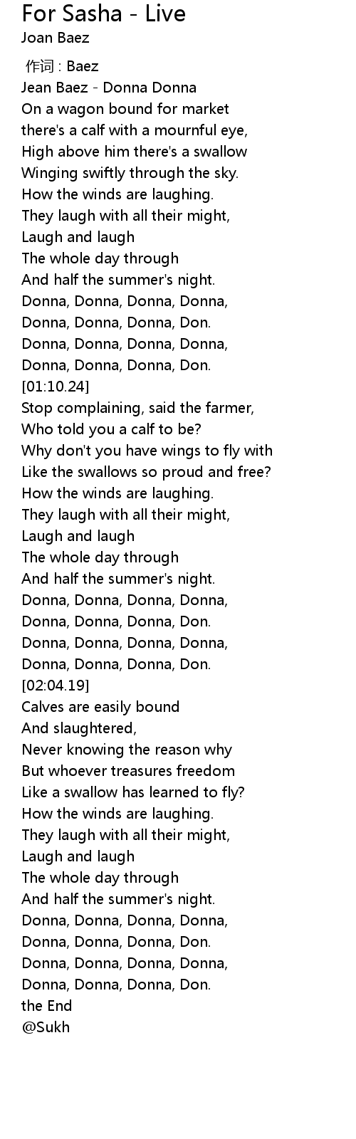 | [01:56.38] | Donna, Donna, Donna, Don. |
