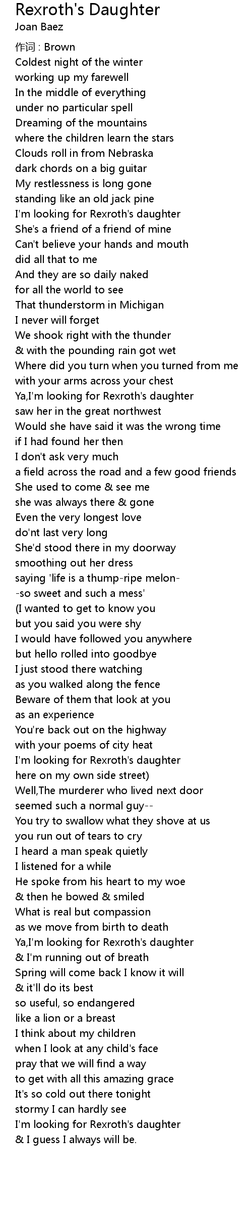| I'm looking for Rexroth's daughter | |