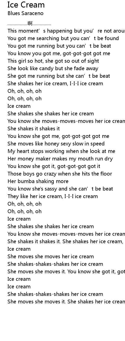 | [03:16.490] | She moves she moves it. She shakes her ice cream, I-I-I ice cream |