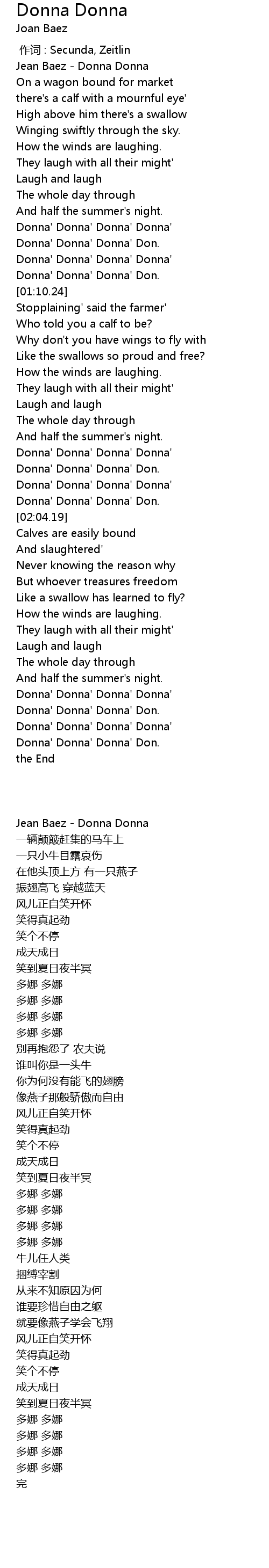 | [00:04.24] | Jean Baez - Donna Donna |