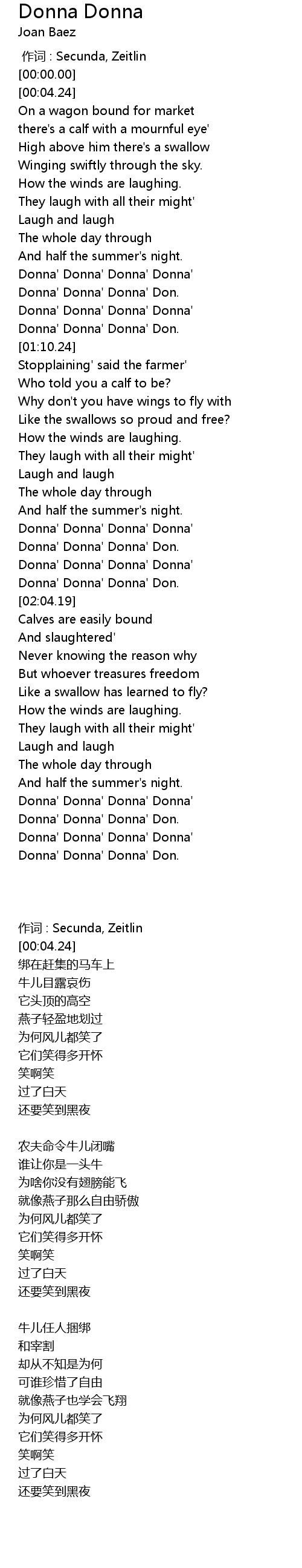 | [01:48.43] | Donna' Donna' Donna' Don. |