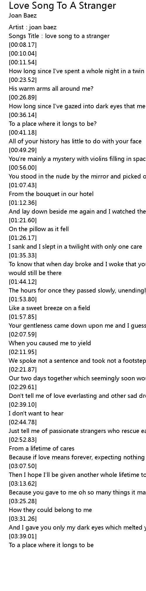 | [00:04.74] | Songs Title:love song to a stranger |
