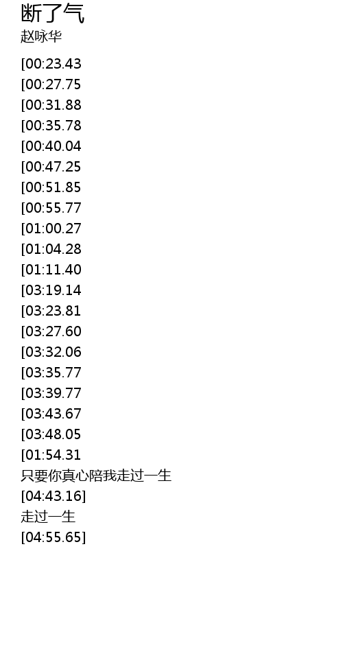 | [04:23.98][03:48.05][01:48.16] | 只要你真心陪我走过一生 |