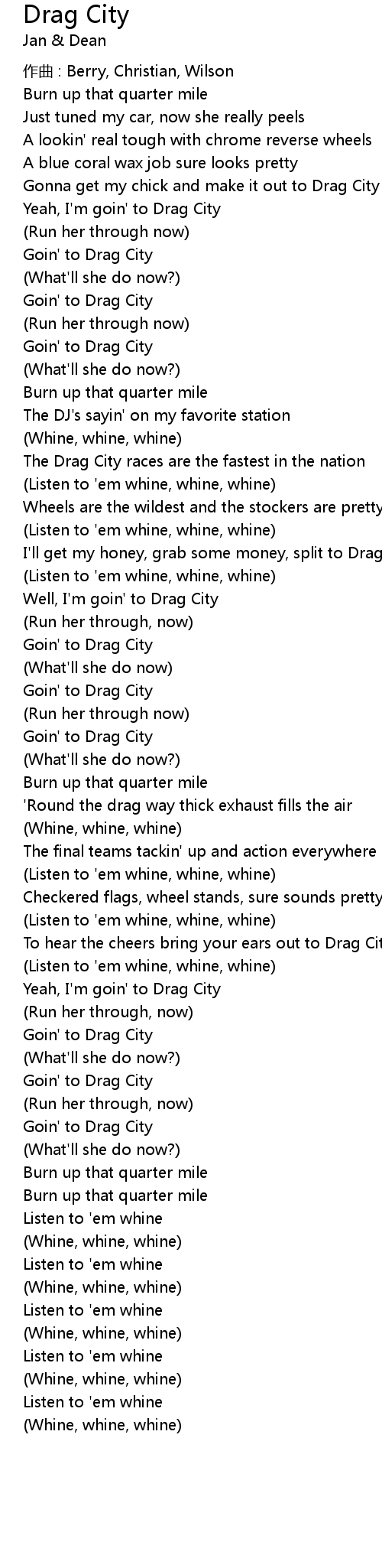 | Gonna get my chick and make it out to Drag City | |