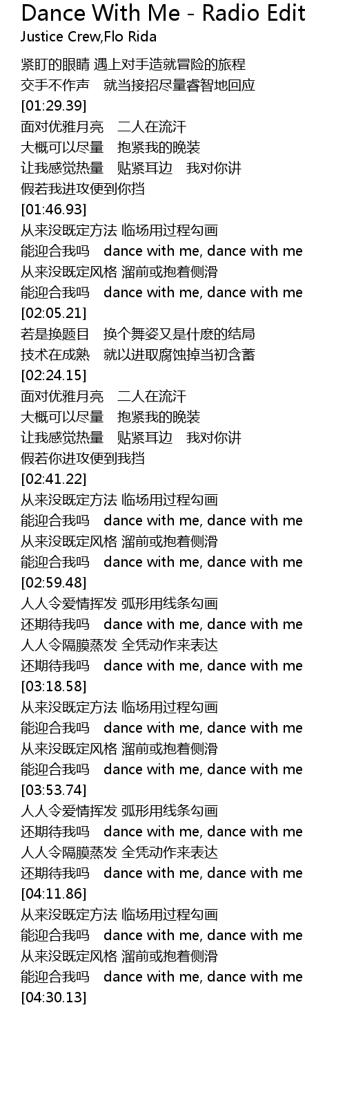 | [03:59.32] | hai qi dai wo ma dance with me, dance with me |