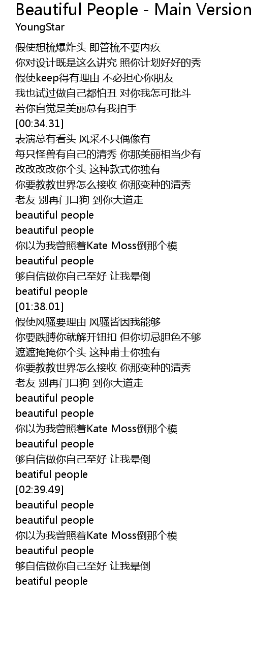 | [02:36.96] | beatiful people |