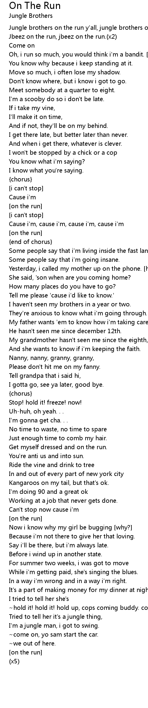 Jungle brothers on the run y'all, jungle brothers on the run, (x2) |