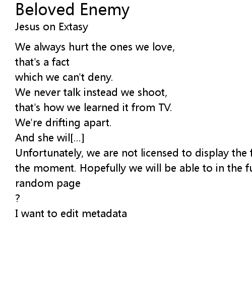 | Unfortunately, we are not licensed to display the full lyrics for this song at the moment. Hopefully we will be able to in the future. Until then, how about a | |