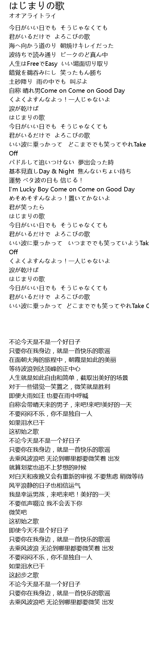 | [02:04.57] | I'm Lucky Boy Come on Come on Good Day |