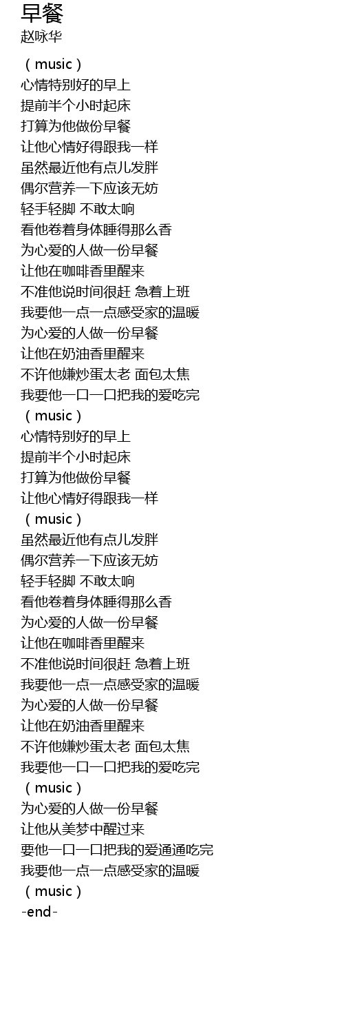 | [01:29.19] | 为心爱的人做一份早餐 |