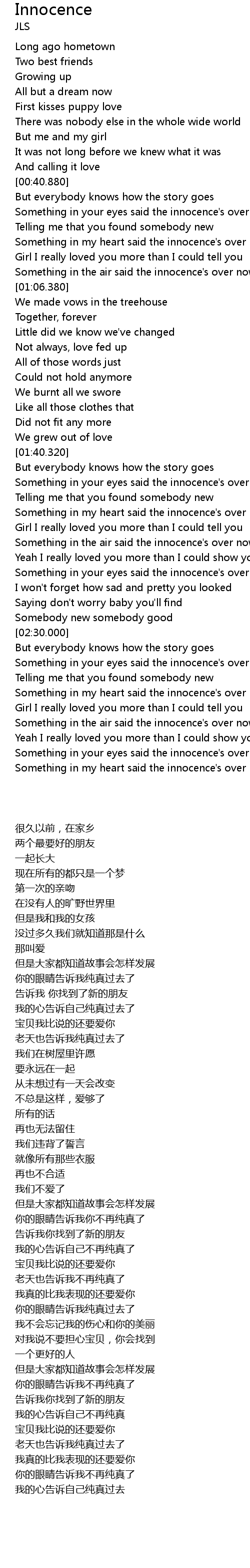 | [02:40.100] | Something in your eyes said the innocence's over now |