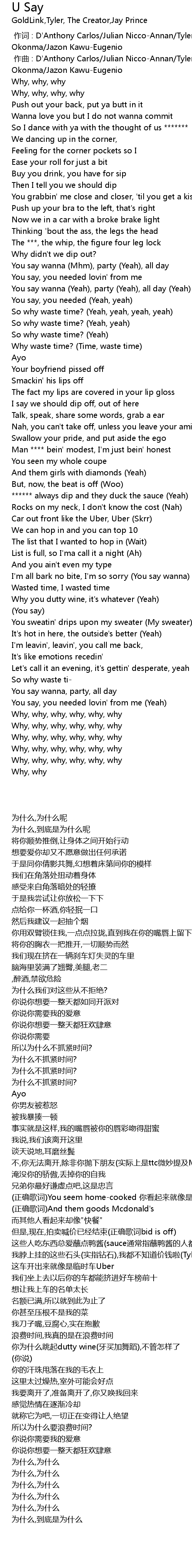 | [00:00.000] | 作词 : D'Anthony Carlos/Julian Nicco-Annan/Tyler Gregory Okonma/Jazon Kawu-Eugenio |