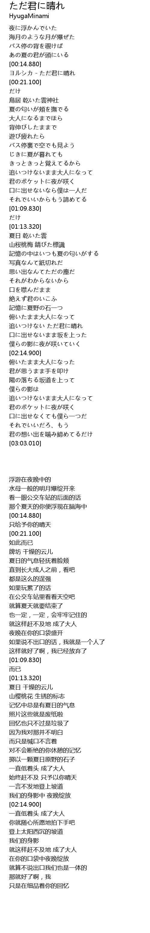 | [00:15.230] | ヨルシカ - ただ君に晴れ |