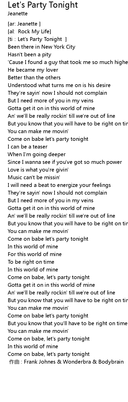 | [03:03.00 ] | Come on babe, let's party tonight |