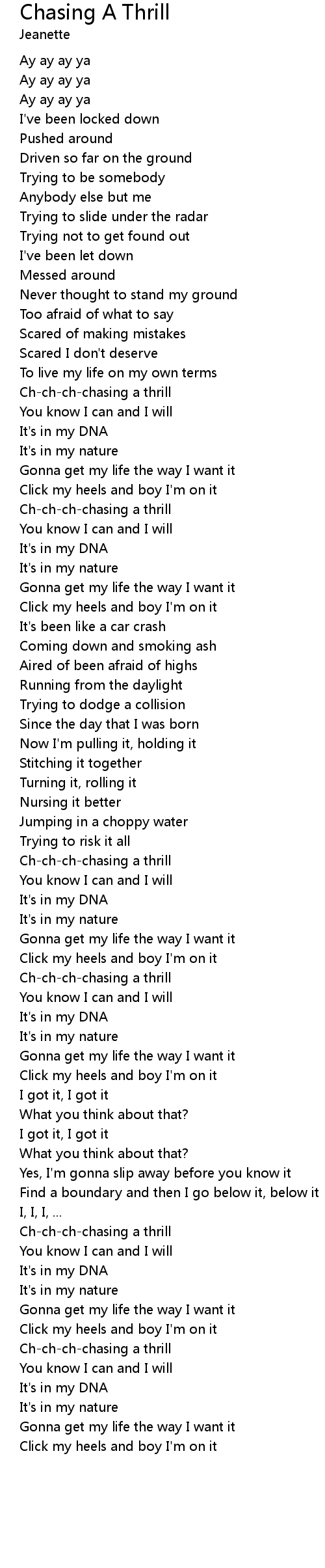Ch-ch-ch-chasing a thrill |