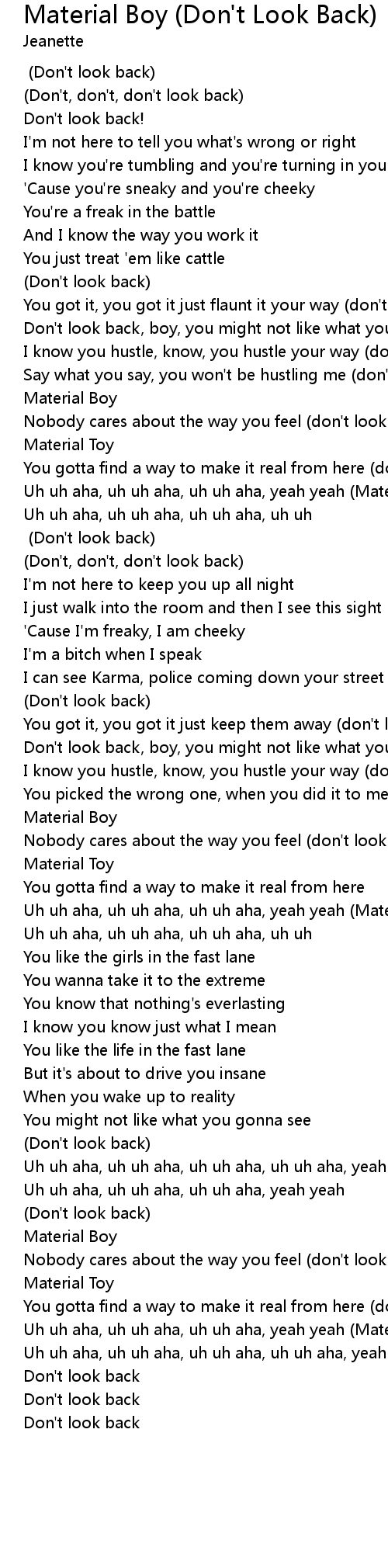Uh uh aha, uh uh aha, uh uh aha, yeah yeah (Material Boy) |