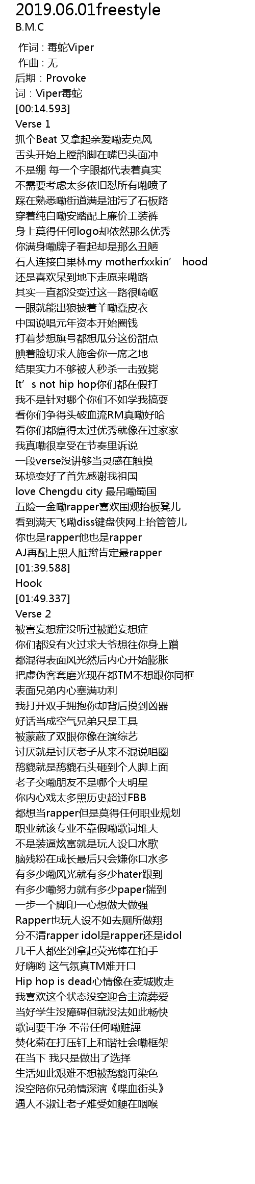 | [00:12.344] | 词:Viper毒蛇 |