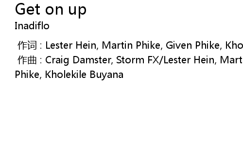 | [00:00.000] | zuo qu : Craig Damster, Storm FX Lester Hein, Martin Phike, Given Phike, Kholekile Buyana |