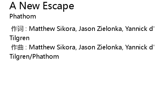 | [00:00.000] | 作曲 : Matthew Sikora, Jason Zielonka, Yannick d' Assgines, Anton Tilgren/Phathom |