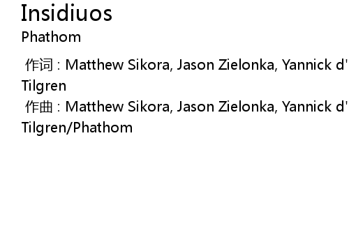 | [00:00.000] | 作曲 : Matthew Sikora, Jason Zielonka, Yannick d' Assgines, Anton Tilgren/Phathom |