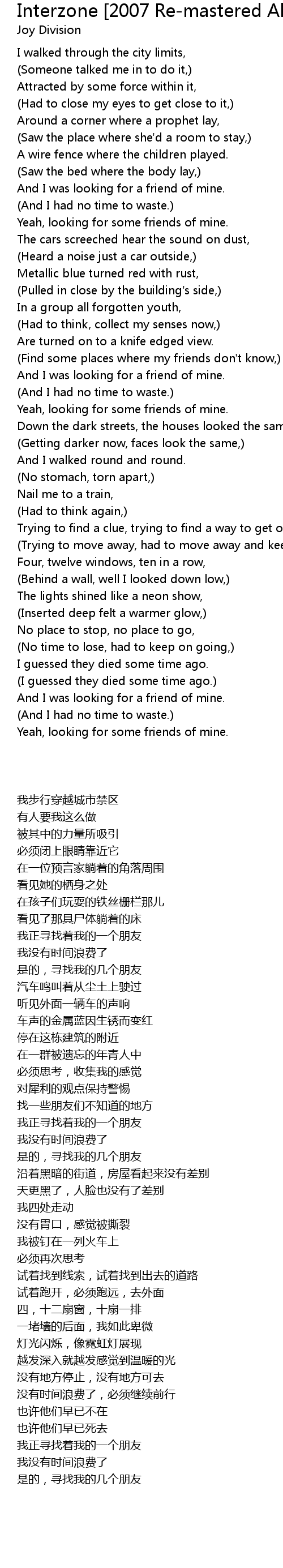 Interzone [2007 Re-mastered Album Version] Lyrics