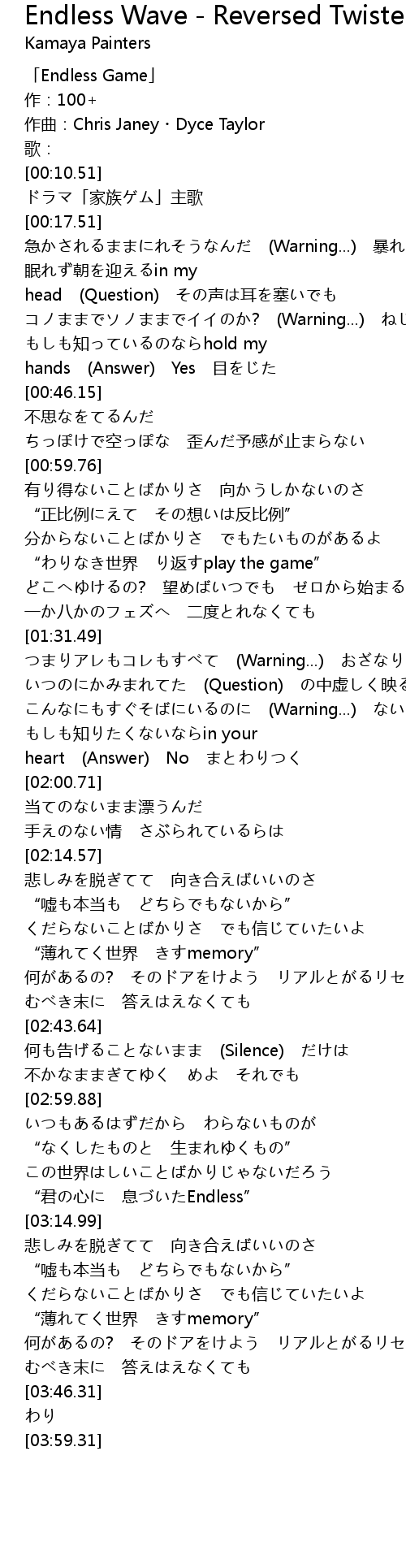 | [00:00.51] | 「Endless Game」 |