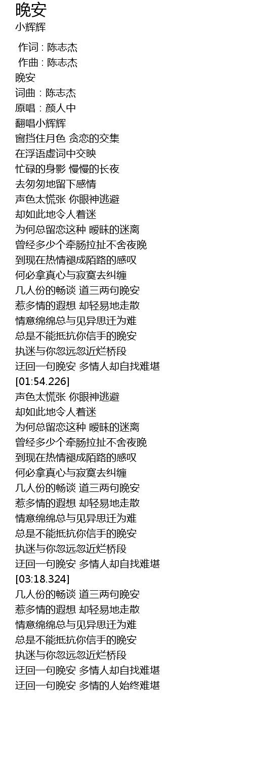 | [03:54.203] | 总是不能抵抗你信手的晚安 |