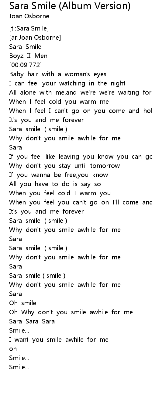 | [02:48.154] | Oh Why don' t you smile awhile for me |