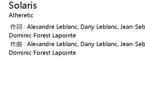| [00:00.000] | zuo qu : Alexandre Leblanc, Dany Leblanc, JeanSebastien Gagnon, Dominic Forest Lapointe |