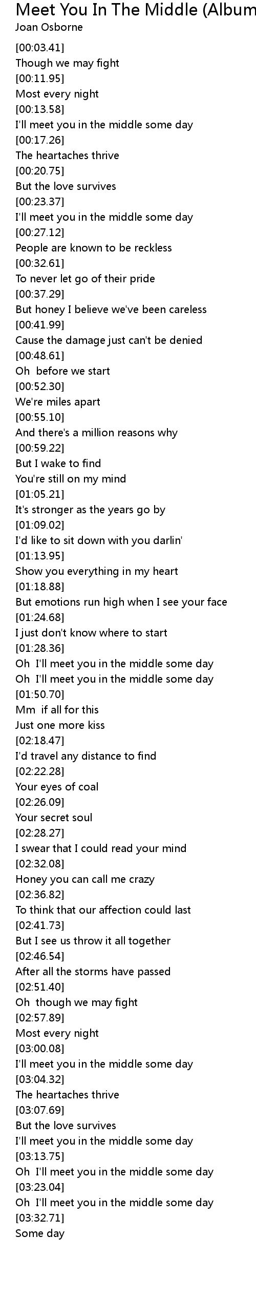 Oh I'll meet you in the middle some day |
