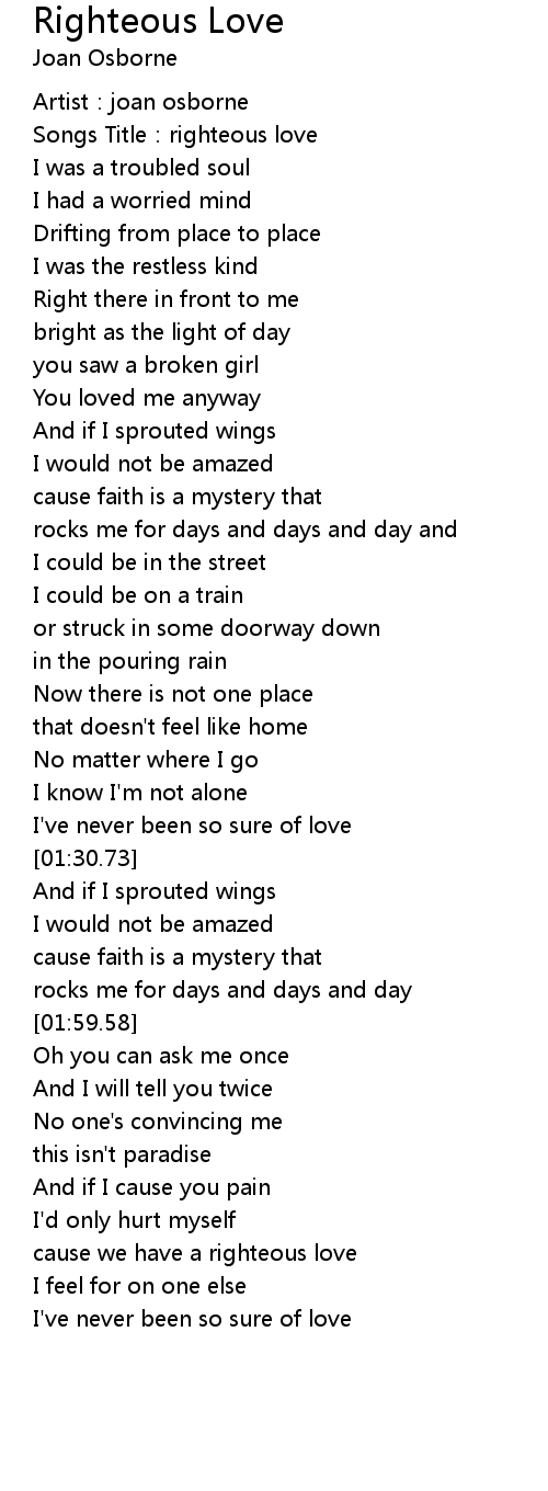 | [00:01.11] | Songs Title:righteous love |