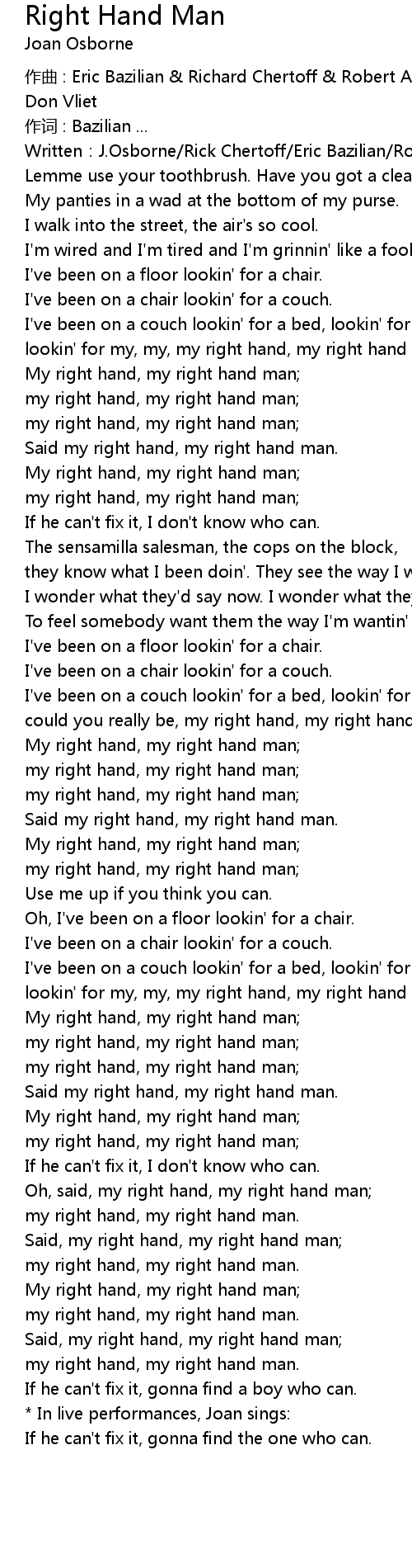 | 作曲 : Eric Bazilian & Richard Chertoff & Robert Andrew Hyman & Joan Osborne & Don Vliet | |