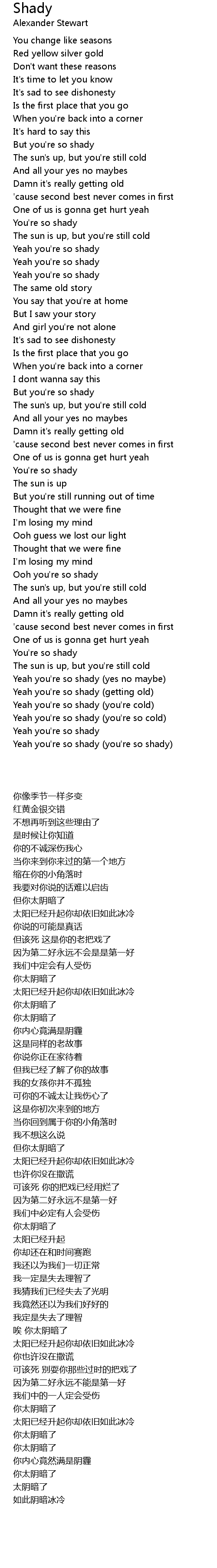 Yeah you're so shady (you're so cold) |