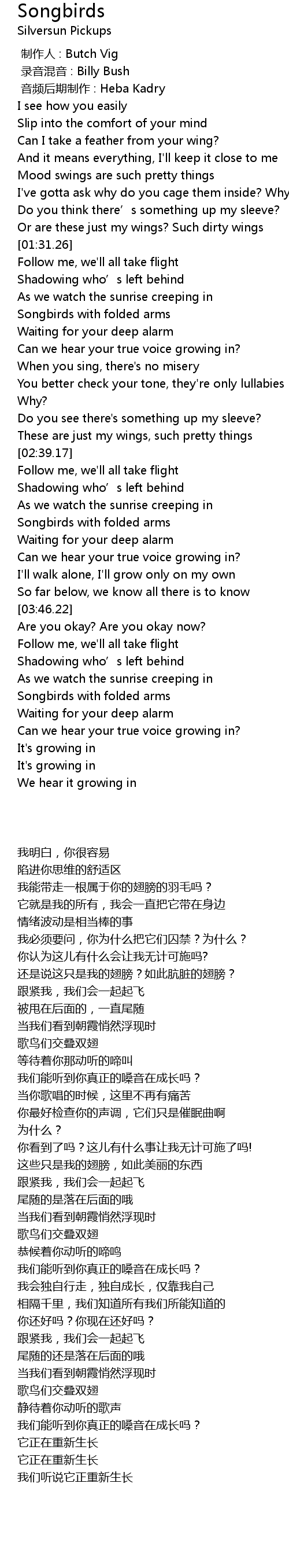 | [02:56.68] | Songbirds with folded arms |