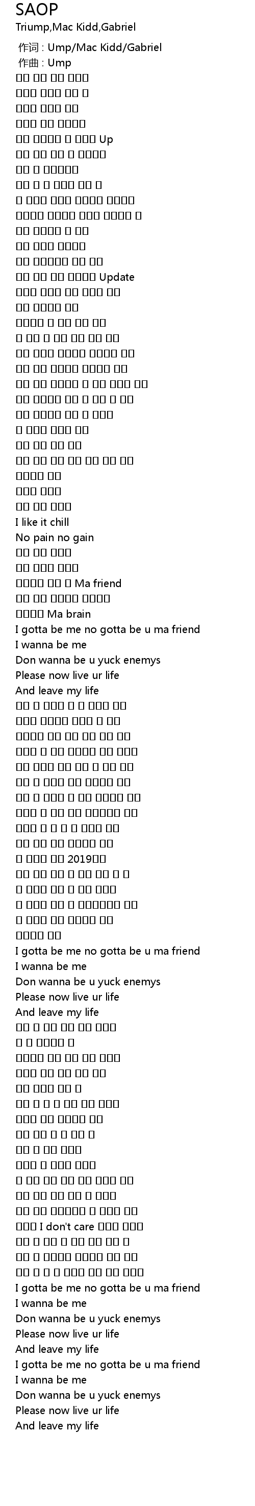 | [00:00.000] | 作词 : Ump/Mac Kidd/Gabriel |