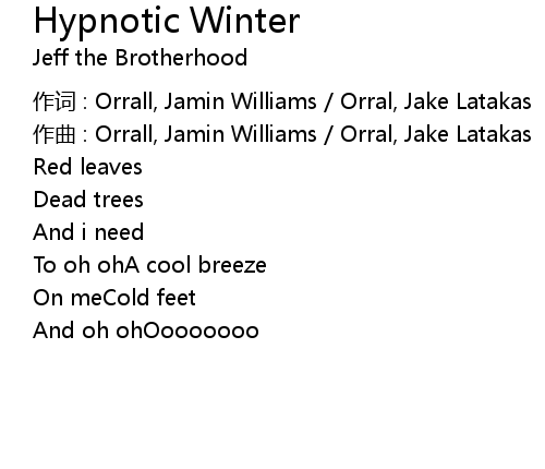 | 作词 : Orrall, Jamin Williams / Orral, Jake Latakas | |