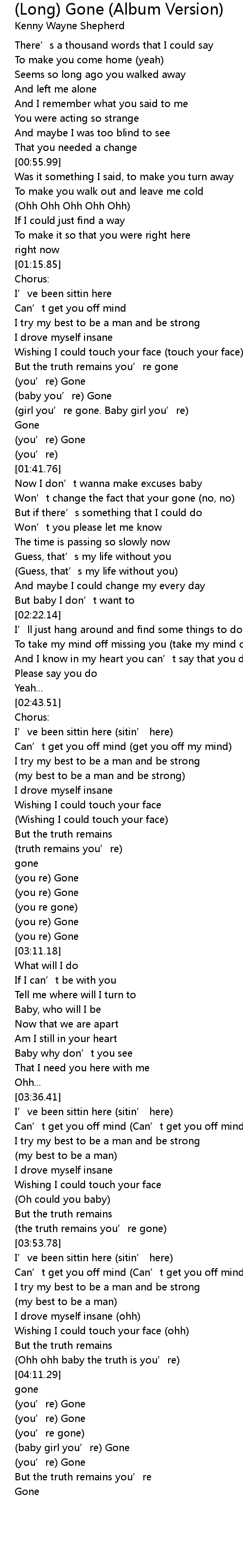| [03:01.65] | (you re) Gone |