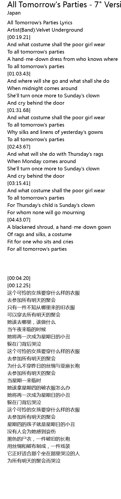 All Tomorrow's Parties Lyrics |