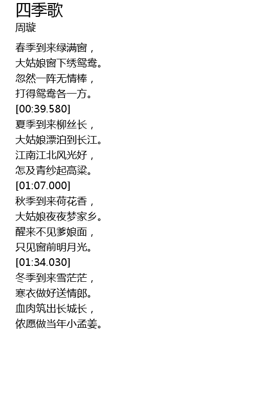 | [01:43.450] | 寒衣做好送情郎。 |