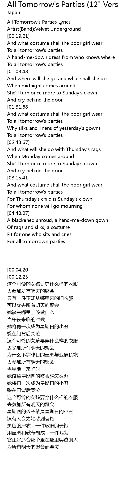 All Tomorrow's Parties Lyrics |