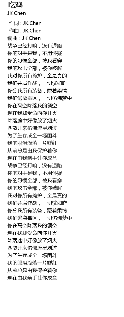 | [00:00.000] | 作词 : JK.Chen |