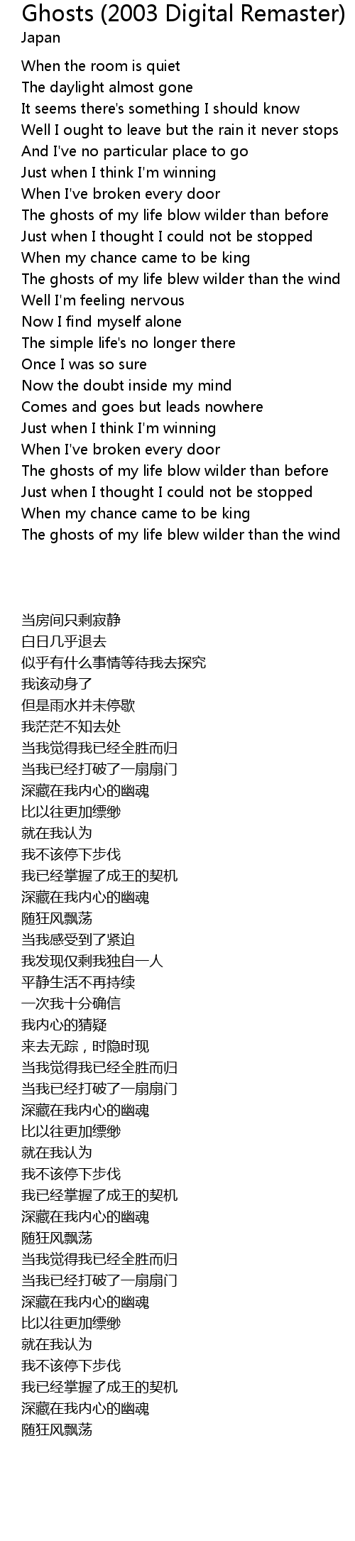 | The ghosts of my life blow wilder than before | |