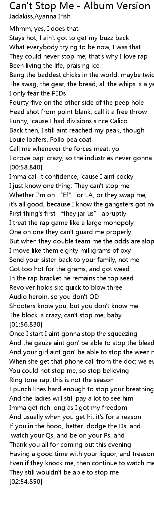 | Song | Can't Stop Me - Album Version (Explicit) |